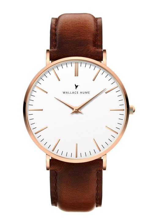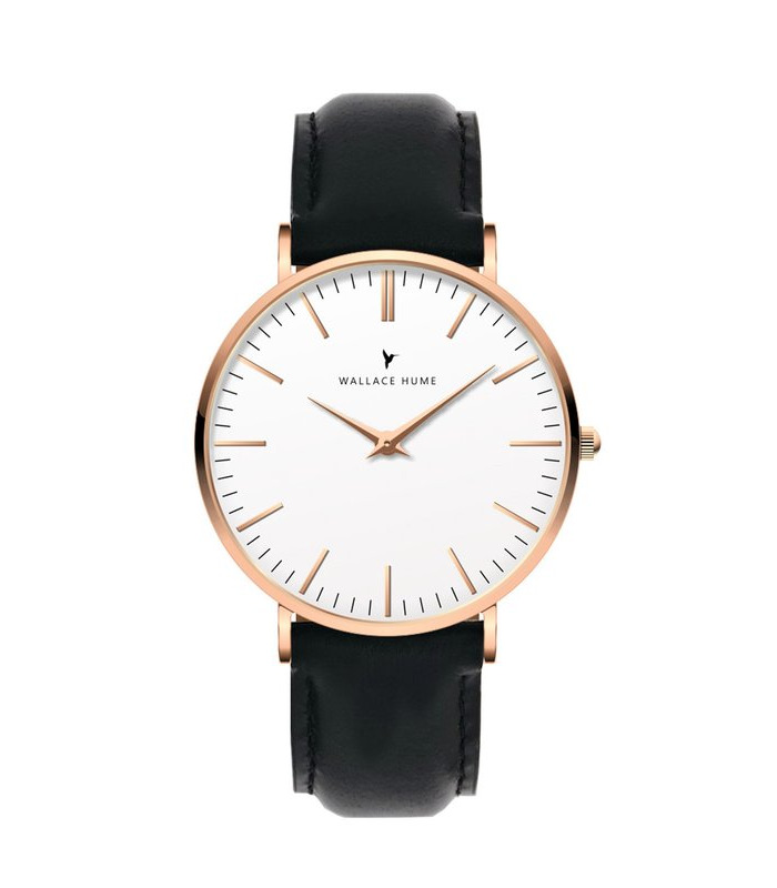 Wallace Hume Uhren haben einen Gehäusedurchmesser von 40 mm (41 mm mit Krone) und eine ultradünne Gehäusedicke von nur 6,5 mm — eine der dünnsten minimalistischen Uhren auf dem Markt.